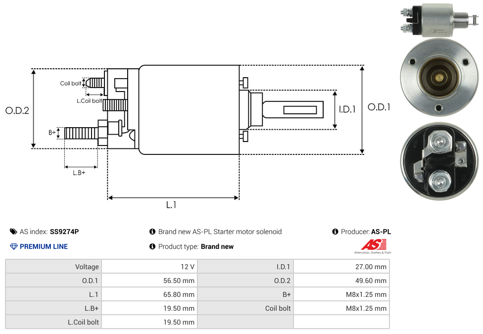 | B+ Stud Diameter & Thread Pitch (B+) | M8x1.25 mm |