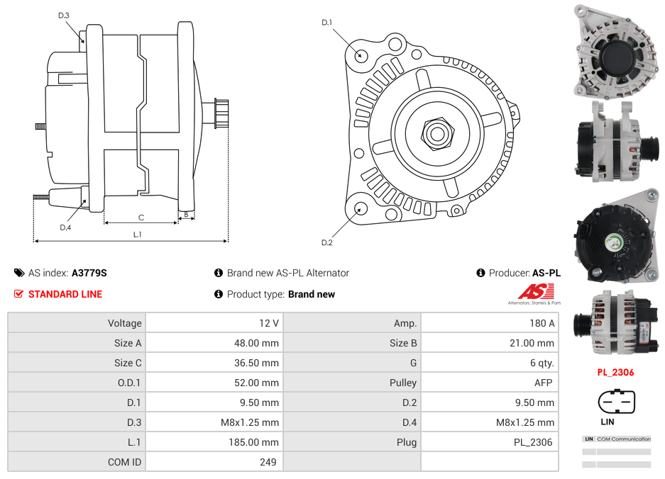| Mount Inside Length or Pad Mount C-C (C) | 36.50 mm |