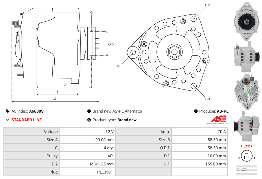 | Pulley Outside Diameter (O.D.1) | 58.50 mm |