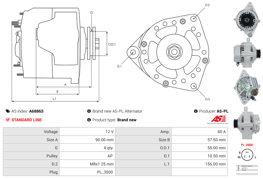| Pulley Outside Diameter (O.D.1) | 55 mm |