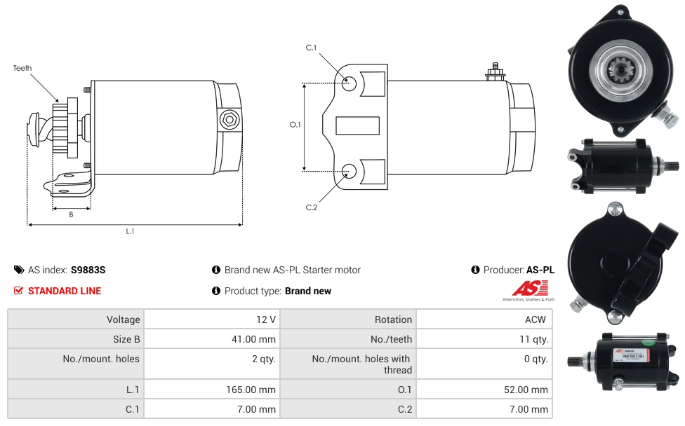 | Mount Hole Center - Center (O.1) | 52 mm |