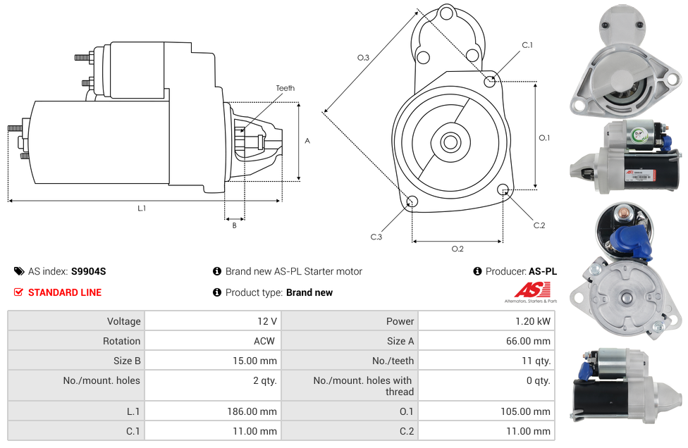 | Mount Hole Center - Center (O.1) | 105 mm |