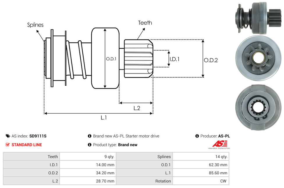 | No./Splines | 14 qty |