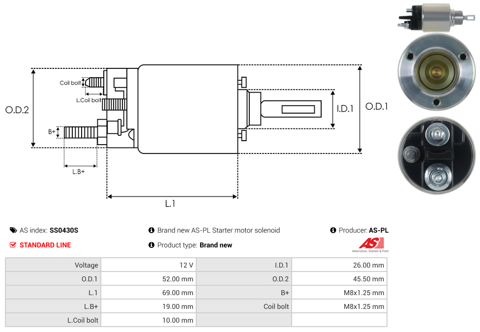 | B+ Stud Diameter & Thread Pitch (B+) | M8x1.25 mm |