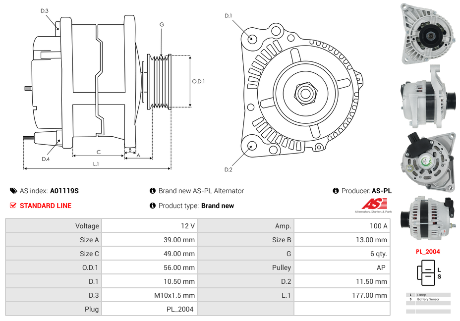 | Pulley to Mount Distance (A) | 39.00 mm |