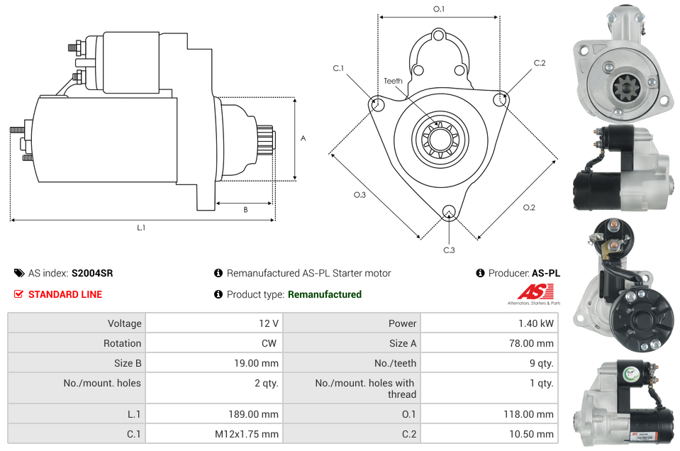 | Mount Hole Diameter (C.1) | M12x1.75 mm |