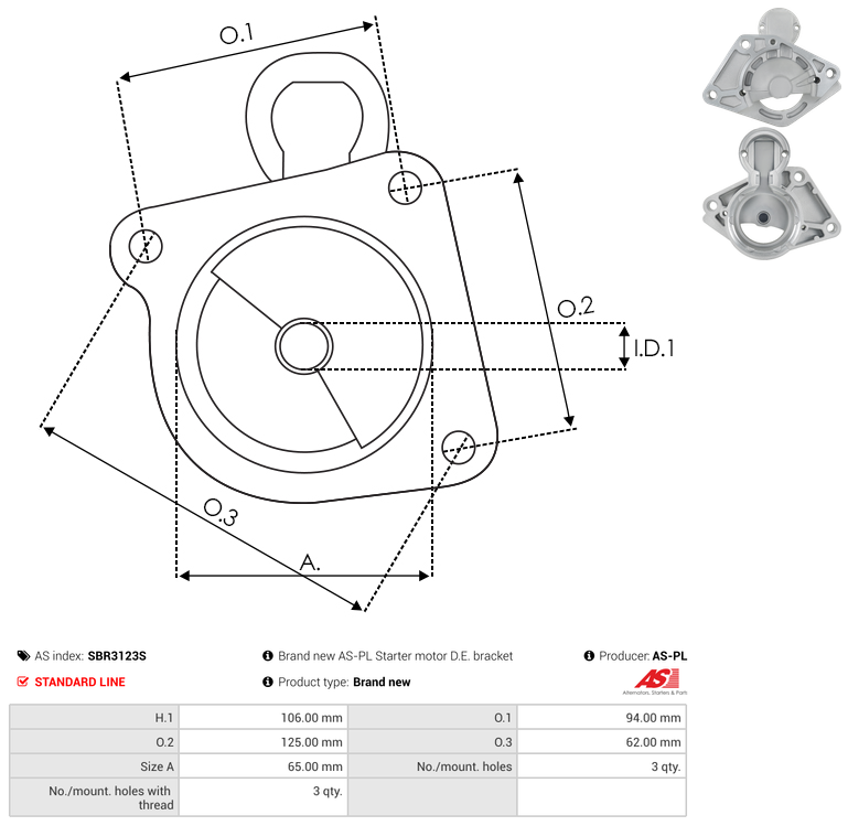 | Mount Hole Center - Center (O.2) | 125.00 mm |