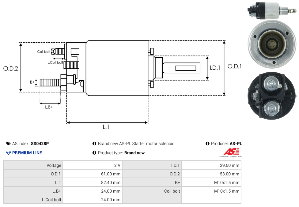 | B+ Stud Diameter & Thread Pitch (B+) | M10x1.5 mm |
