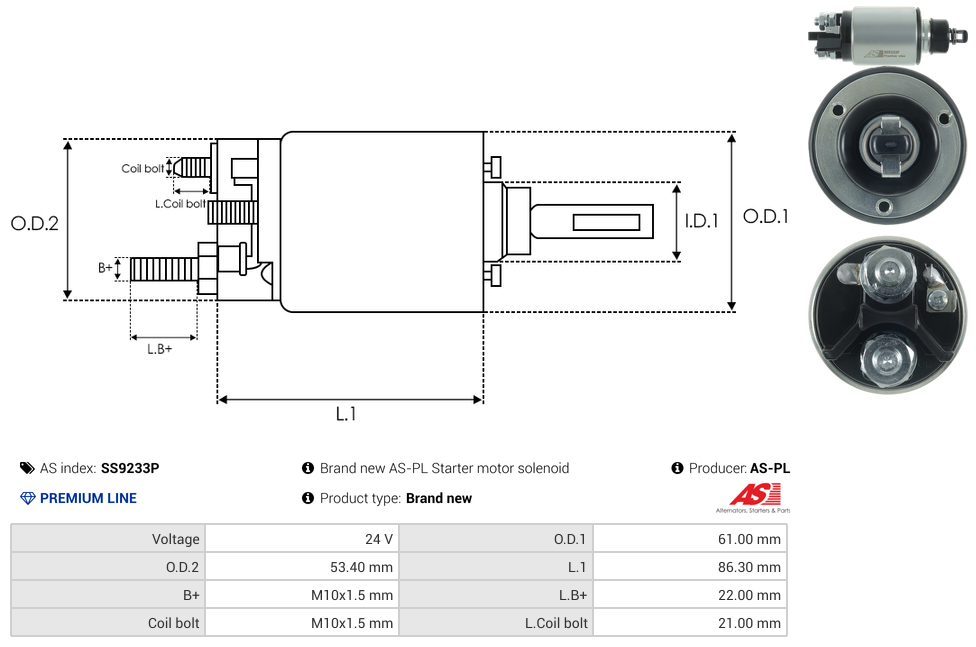 | B+ Stud Diameter & Thread Pitch (B+) | M10x1.5 mm |