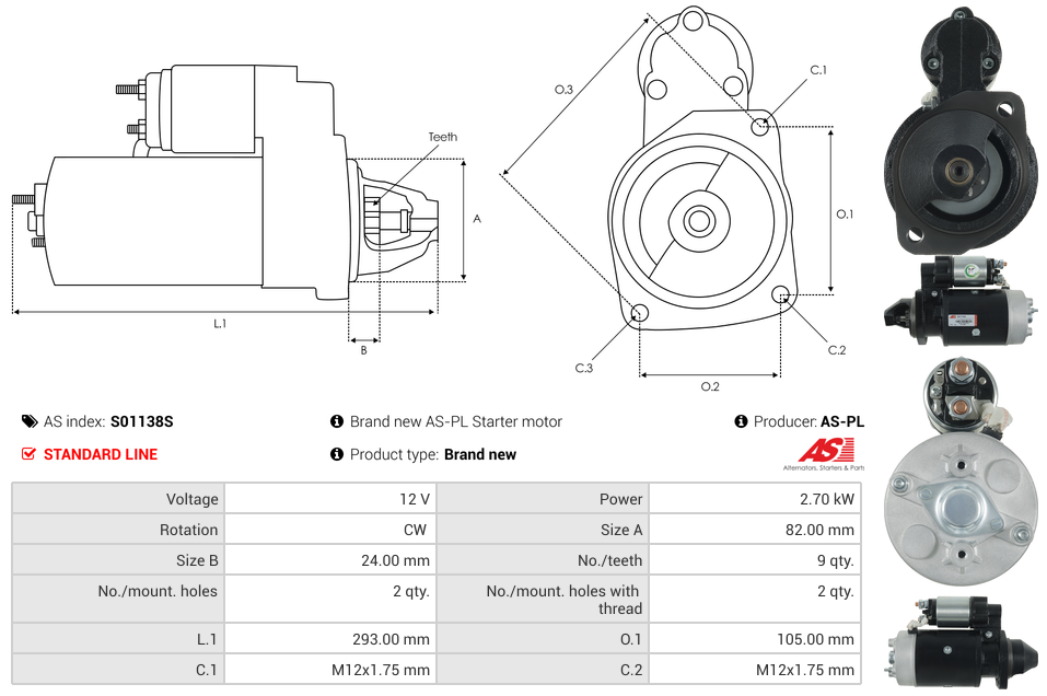 | Mount Hole Diameter (C.1) | M12x1.75 mm |