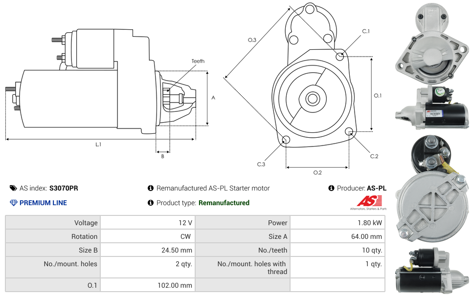 | Mount Hole Center - Center (O.1) | 102.00 mm |