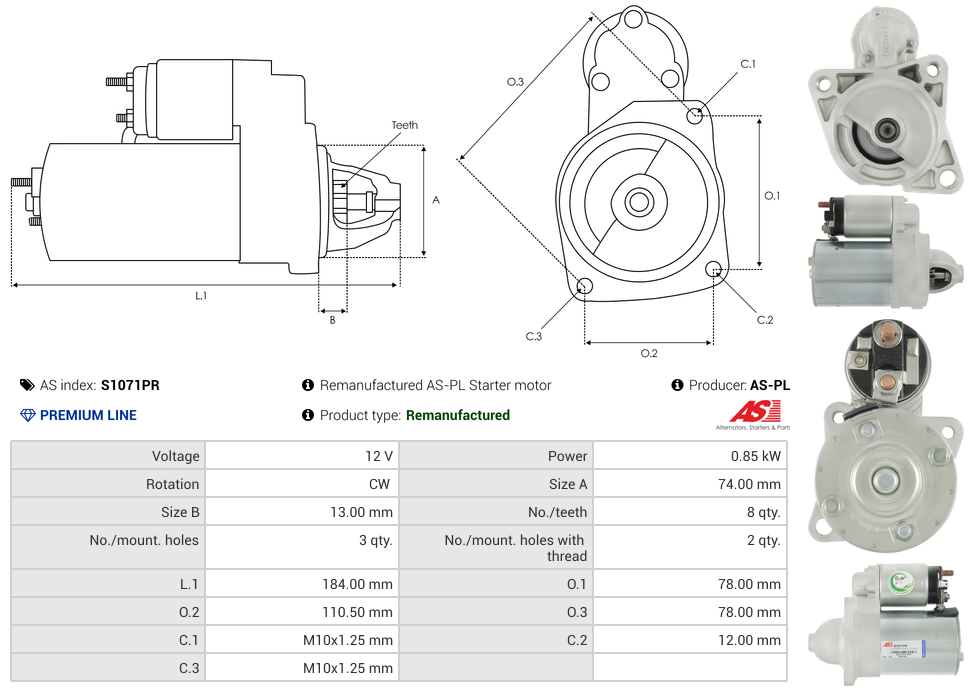 | Mount Hole Diameter (C.3) | M10x1.25 mm |