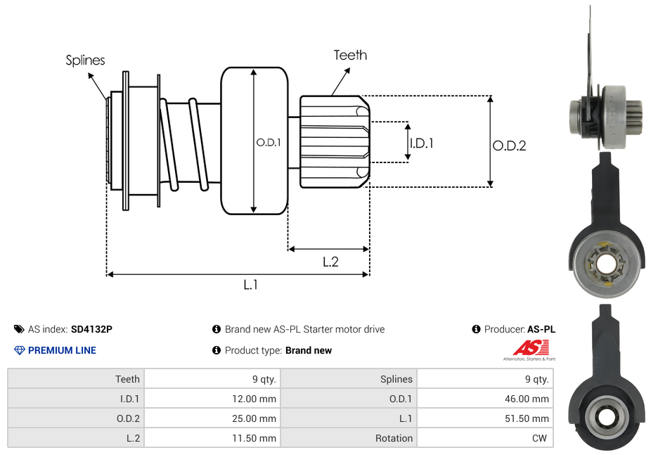 | No./Splines | 9 qty |