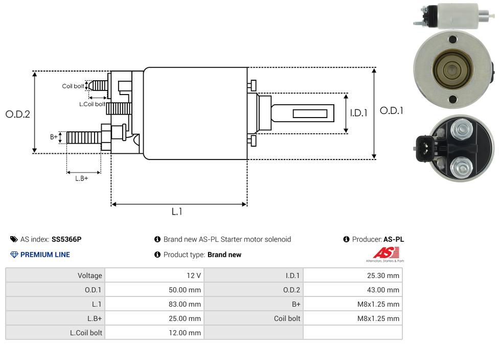 | B+ Stud Diameter & Thread Pitch (B+) | M8x1.25 mm |