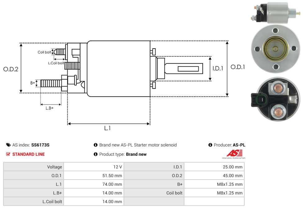 SS6173S - Brand new AS-PL Starter motor solenoid